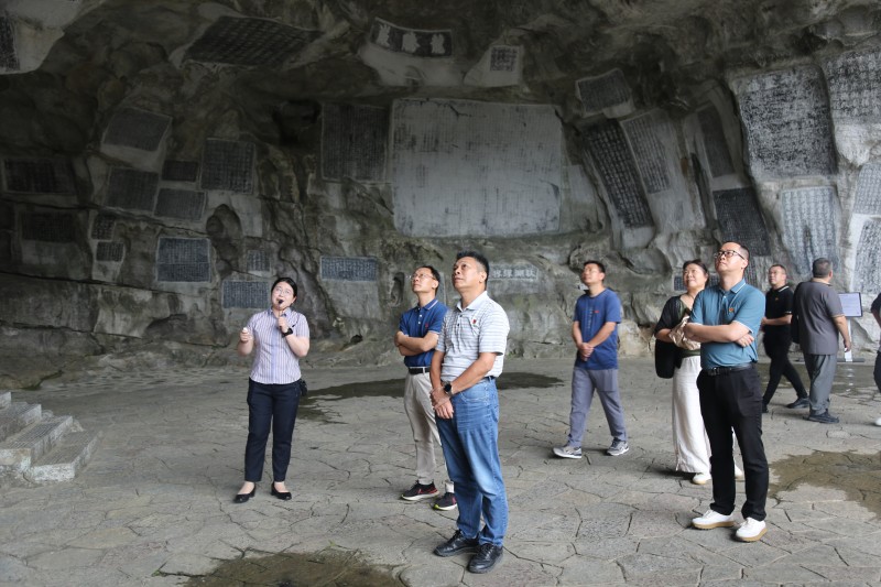 在讲解员的带领下,党员教师们参观了馆内各个展区,详细了解石刻背后的历史故事及文化价值。在《龙图梅公瘴说》题记前,讲解员绘声绘色地讲解,用“五瘴”抨击了当时贪官污吏腐败行为。方信孺所刻的“世节堂”三个大字,“节”,乃气节、节操,世节,即世代保持节操的意思。这些作品都反映了古人对清正廉洁的崇尚,引人深思。