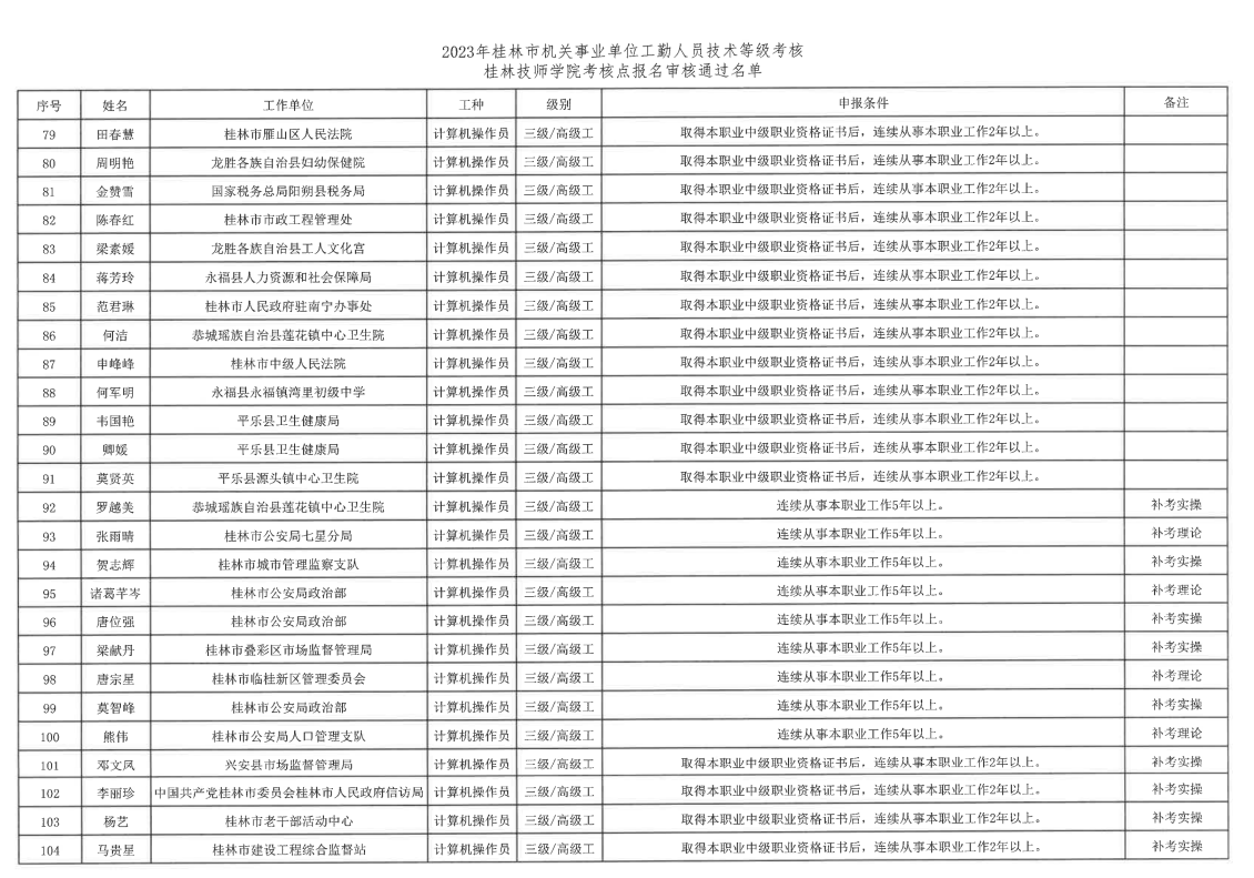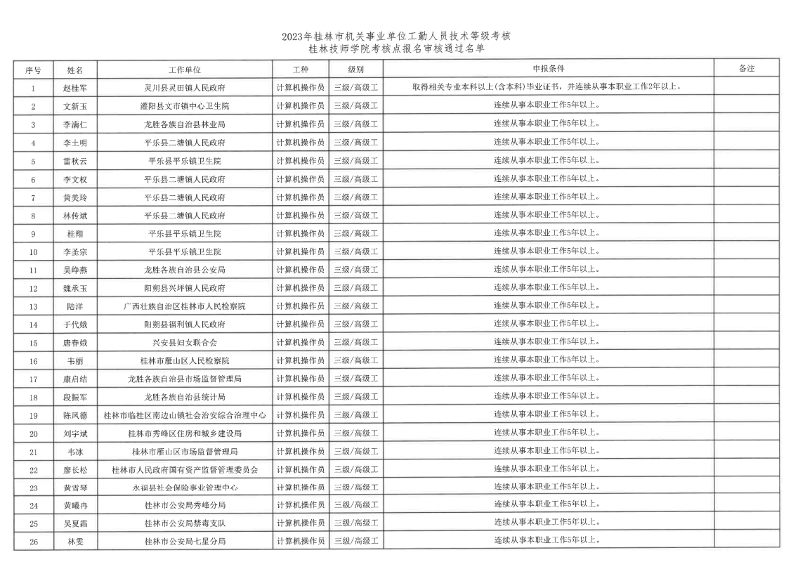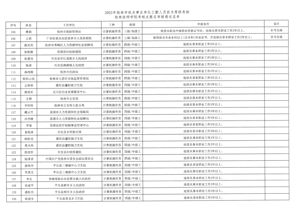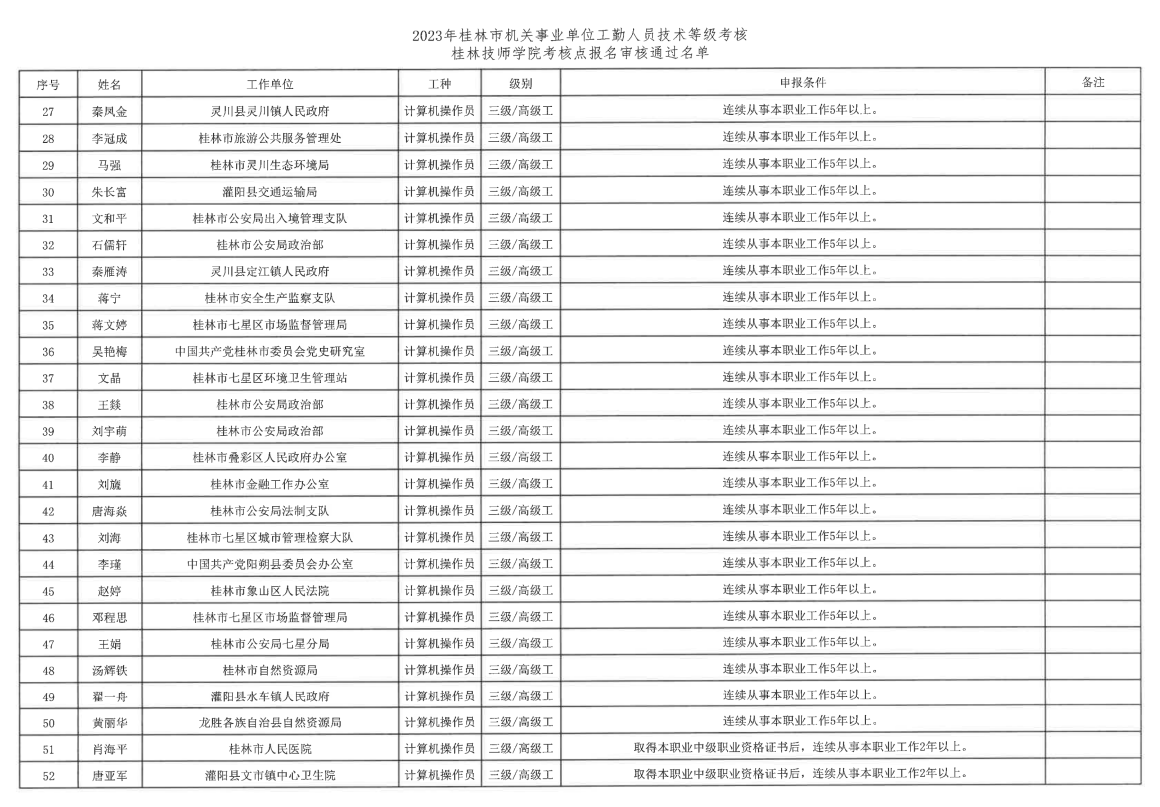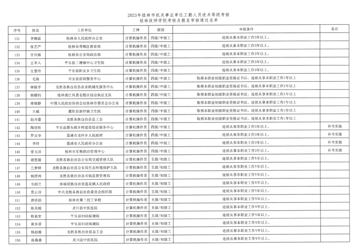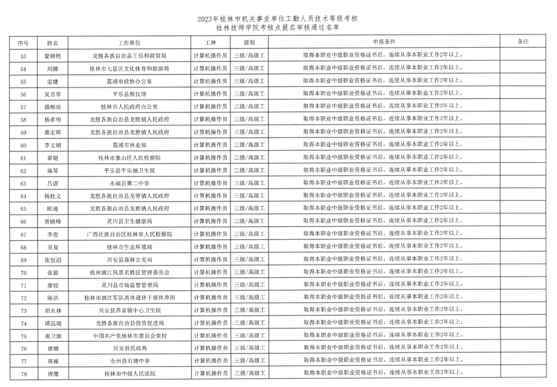 2023年桂林市机关事业单位工勤人员技术等级考核桂林技师学院考核点报名审核通过名单公示