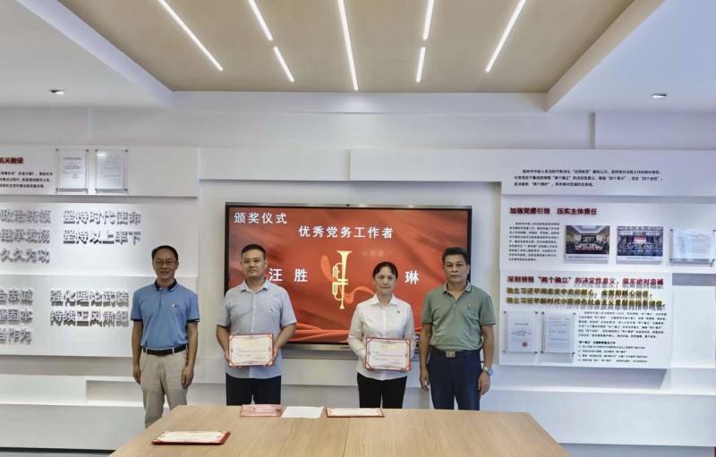 随后,在学院“两优一先”颁奖仪式上,学院党总支部书记王良优宣读了关于表彰学校优秀共产党员、优秀党务工作者和先进基层党组织的决定。学院党总支部书记王良优,党总支部副书记、院长李金河,党总支部委员、副院长陈莹、赵德元为获得荣誉的个人及集体颁发证书。