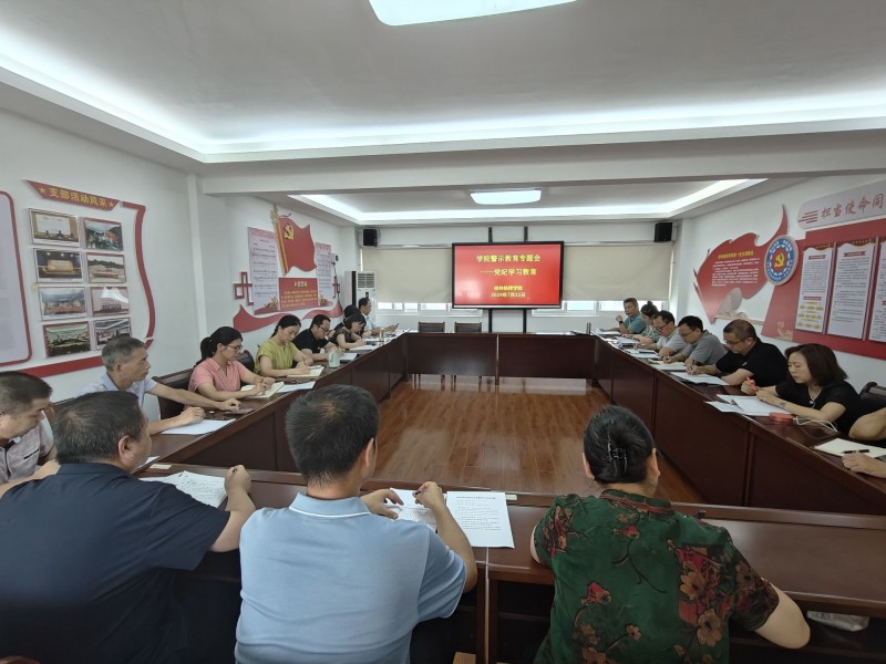 7月11日下午,我院在党员活动室召开党纪学习教育警示教育大会。学院党总支部委员、中层正职及系主任参加会议。会议由王良优书记主持。