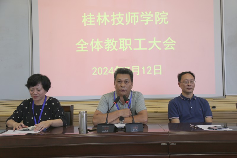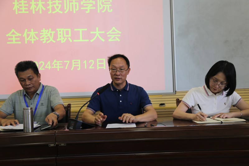 接着,学院党总支部副书记、院长李金河对本学期工作进行了总结并对假期的工作进行了部署。他对学院现阶段的工作进行了说明,并在教学管理、假期工作方面提出了要求。一是加强校园安全管理;二是积极谋划招生工作,创新招生方式,确保招生质量;三是提升教育教学质量;四是完善学生校外实习管理制度;五是拓宽技能培训渠道;六是加强学生管理措施,丰富学生活动;七是加强环境卫生管理。