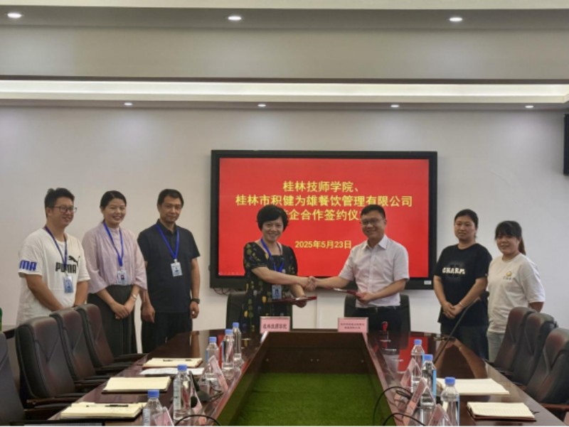 2025年5月23日,桂林技师学院与桂林市积健为雄餐饮管理有限公司举行了校企合作签约仪式,桂林市积健为雄餐饮管理有限公司总经理赵海、经营部经理俞春、技术部经理李红萍一行莅临我校,与学院副院长陈莹、教学科科长张帆等领导展开深度交流,并共同签署校企合作协议,开启合作育人共谱产教融合新篇章。