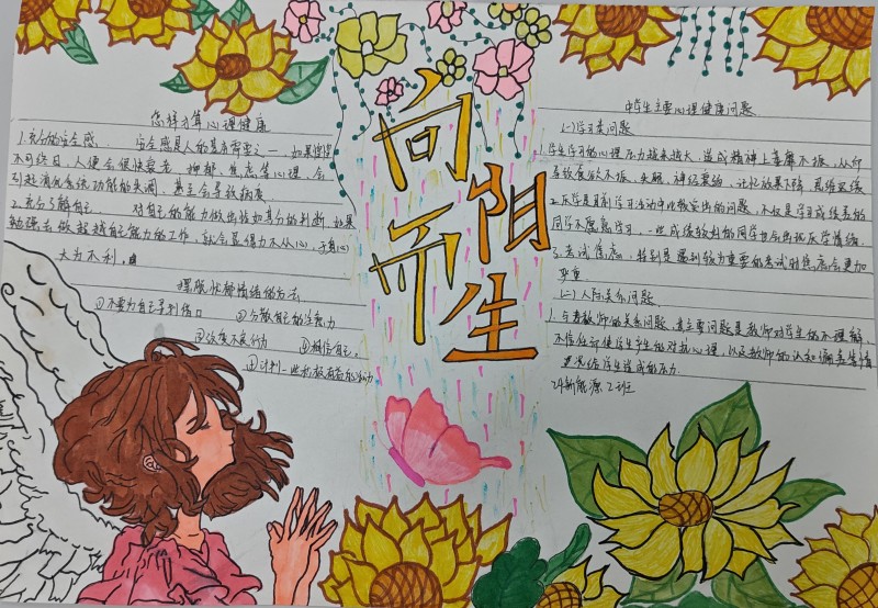 手抄报比赛吸引众多同学踊跃参与。一张张手抄报创意满满、色彩绚丽,它们以独特新颖的视角、丰富多样的形式,呈现了同学们对心理健康知识的领悟吸收。无论是生动有趣的插画,还是精炼深刻的文字,都承载着同学们对于心理健康问题的思考与见解,在校园内形成了浓厚的心理健康文化氛围。