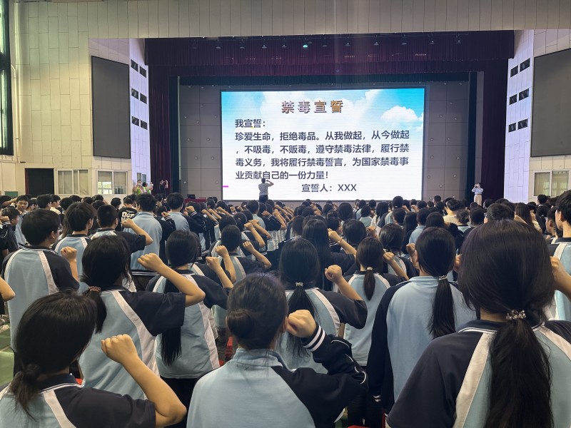 “我宣誓,珍爱生命,远离毒品……”活动尾声,现场的学生们庄严肃立,在唐警长的带领下进行禁毒宣誓,铿锵有力的誓言在礼堂上空回荡,表达了大家坚决抵制毒品、积极参与禁毒的决心。活动结束后,同学们还兴致勃勃地观看了现场展示的毒品模型。通过近距离观察海洛因、冰毒、摇头丸等仿真毒品模型,结合工作人员的详细讲解,同学们对毒品的外观特征有了更清晰的认识,进一步加深了对各类毒品的认识和辨别能力。