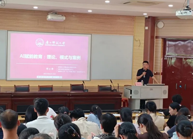 2025年6月13日下午,桂林技师学院在录播室成功举办了“人工智能助力高质量发展”系列培训的第二场《人工智能赋能教育:理论与模式》专题培训。本次培训特邀广西师范大学职业技术师范学院副院长、博士生导师邓小华教授到院主讲。学院院长李金河出席并致辞,全体教师共同参与本次培训活动。