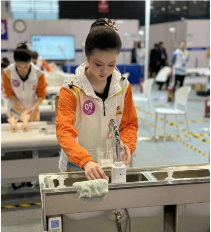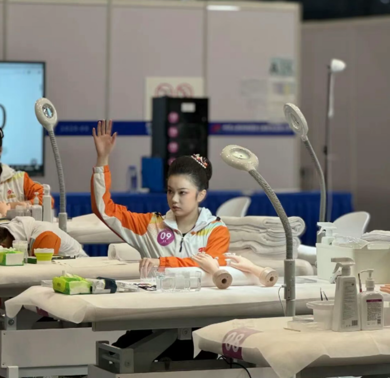 这是朱贞贞再次站上全国技能大赛的舞台,她的心境与首次参赛截然不同。当年作为学生她怀揣着初生牛犊的冲劲,渴望突破自我;如今作为桂林技师学院教师,多了责任与从容,不仅为个人荣誉,更想为学生树立榜样,让他们深知技能之路无止境。备赛时,曾经紧张的细节已成为她课堂上的教学案例,也能沉着应对突发状况。每一次训练与复盘都是对“美”的坚守,此次要全力以赴,不负这段蜕变之旅。