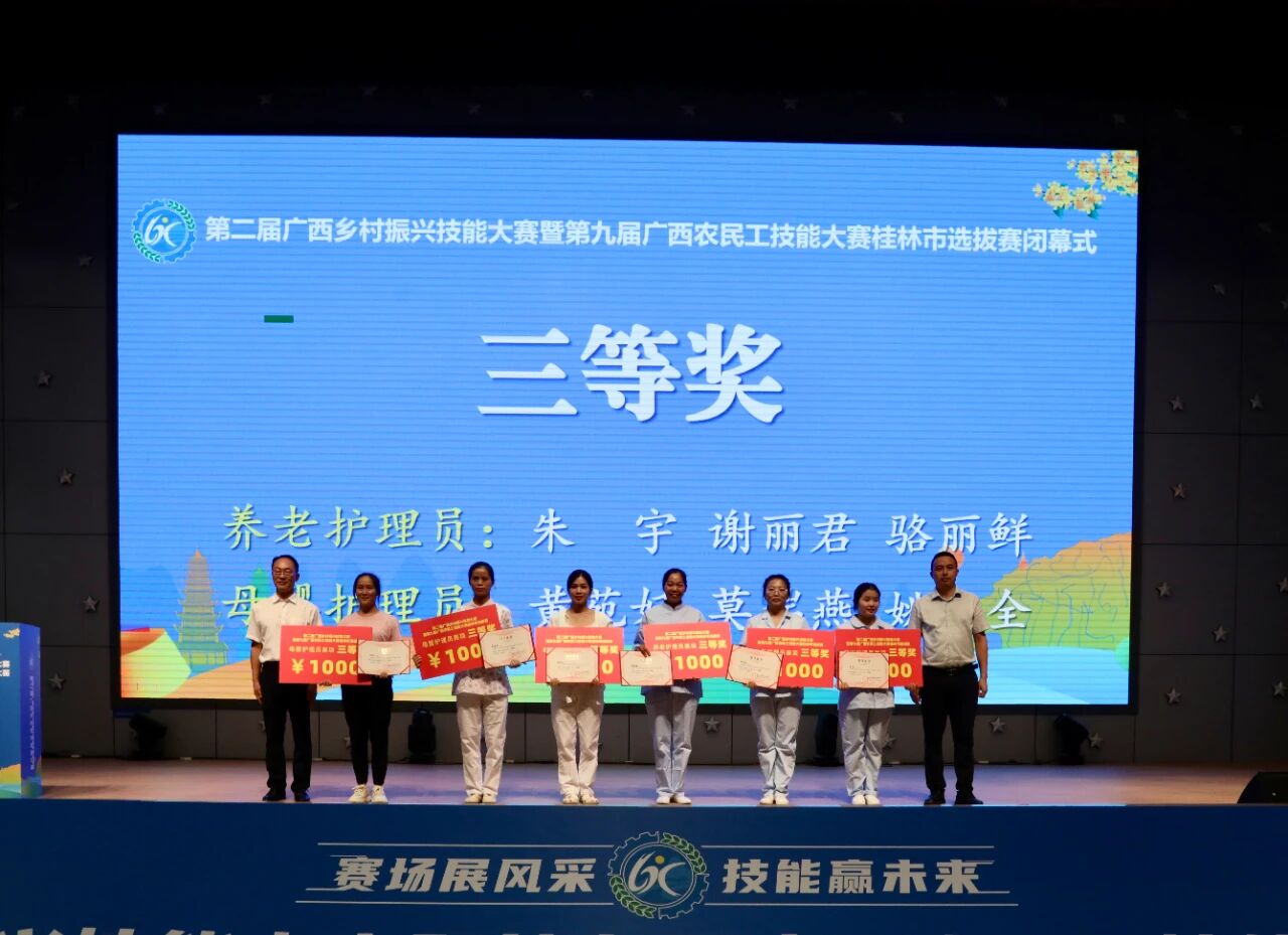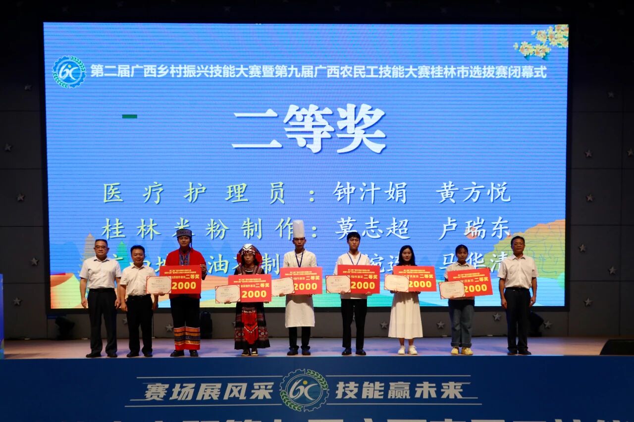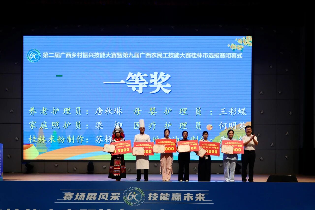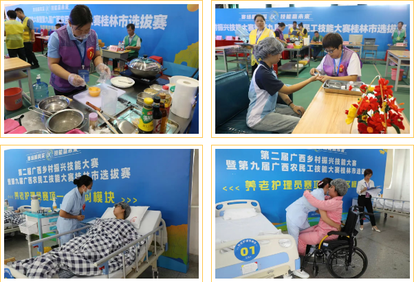 技能比武展风采,匠心筑梦促振兴。9月27日,由桂林市人力资源和社会保障局、桂林市农业农村局、桂林市总工会联合主办,桂林技师学院、桂林市交通技工学校、广西商业技师学院、广西桂林商贸旅游技工学校、桂林市卫生学校、桂林贵嫂家政服务有限公司共同承办的第二届广西乡村振兴技能大赛暨第九届广西农民工技能大赛桂林市选拔赛圆满落幕。
