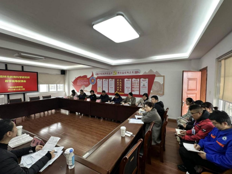为精准把握学院教学动态,提升课堂教学质量,11月19日上午,桂林市教育科学研究所黄永岗主任一行六名教研员莅临我院开展教学视导工作。学院副院长陈莹及教学管理部门人员全程陪同,积极配合教学视导工作。